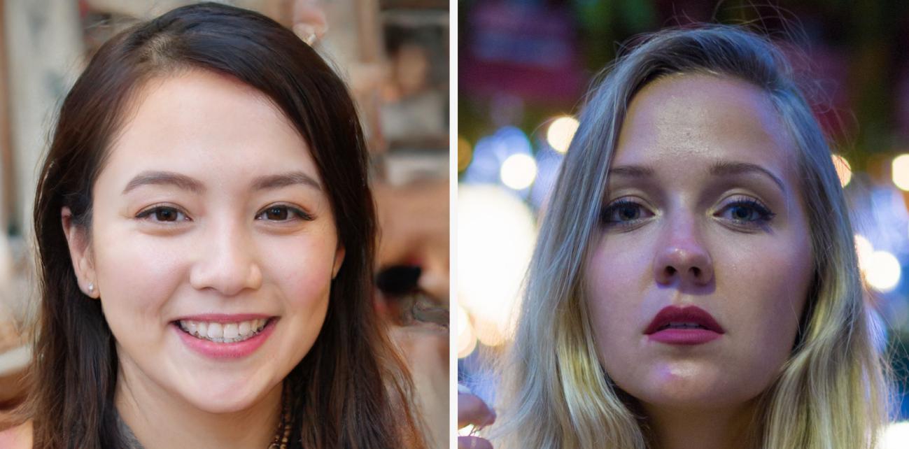 答案揭晓,左边的是生成的,右边的是真实的。是不是感觉非常不可思议,左边这位看上去很漂亮的美女,居然根本就不存在!A“凭空捏造”出一个完全不存在的“人”。
