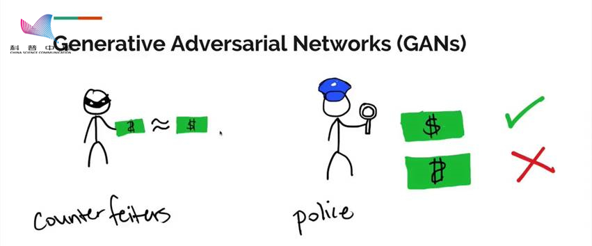 这个故事中的两个“主人公”,假货商和鉴赏专家,分别是GAN算法的生成器和判别器。它们一个负责生成图像,一个负责判断该图像是否符合标准,就像故事里提到的那样经过不断训练,直到最后生成器可以生成以假乱真的图像为止。
